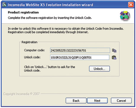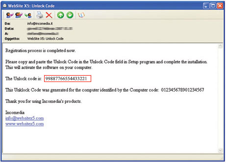 - Copy the Unlock Code from the e-mail message and back to WebSite X5 Setup.
